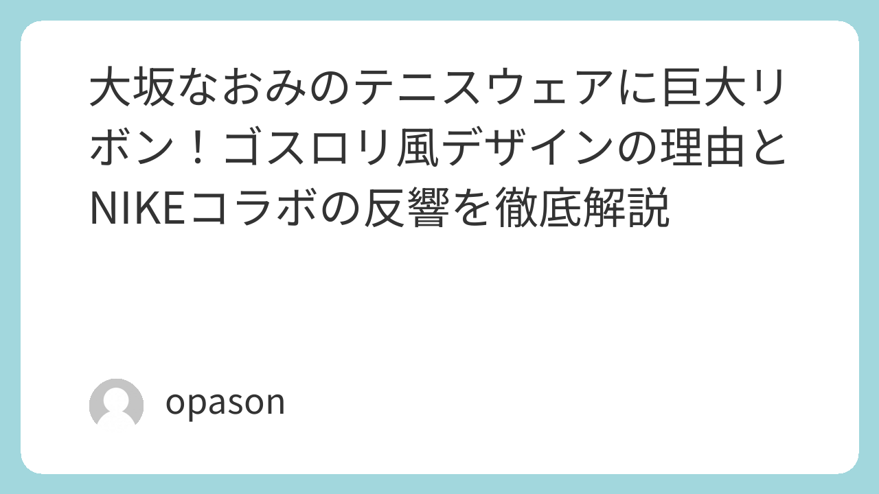 大坂なおみ選手の「リボンウェア」は、単なるトレンドではなく、スポーツとファッションが融合した歴史的な瞬間として記憶されるはずです。