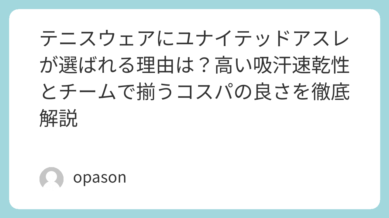 週末のテニスコート、皆さんはどんなウェアでプレーしていますか?「有名メーカーの最新モデルも格好いいけれど、洗い替えがもっと欲しい」「サークルで揃えたいけど予算が限られている」……。そんな悩みを抱えていた私が、最終的に行き着いた答えがユナイテッドアスレでした。