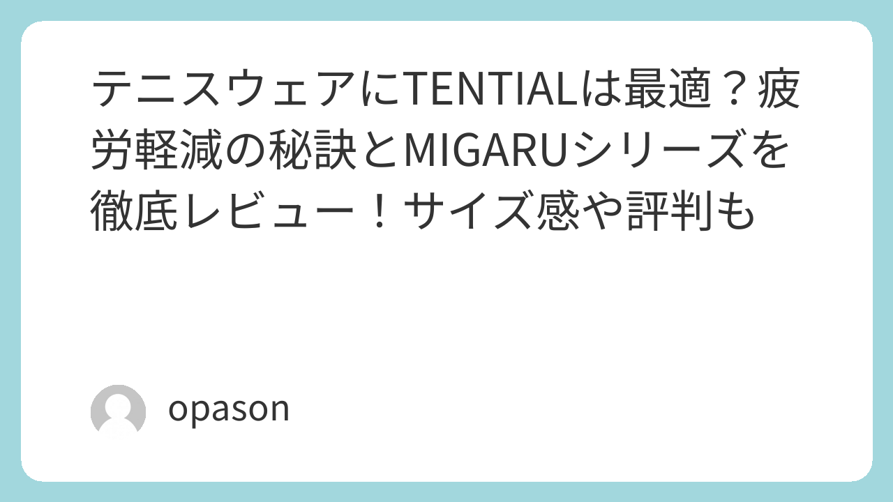 私自身、長年テニスを趣味にしていますが、年齢とともにセット間の回復が遅くなり、後半に足が止まってしまうことが増えました。そんな時に出会ったのが、TENTIAL MIGARUシリーズです。一般的なスポーツブランドのウェアとは一線を画す、その驚きの体感をレビューします。