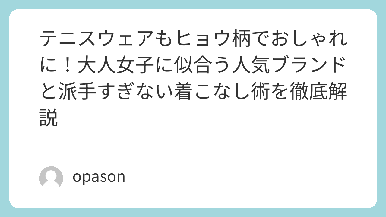 私自身、長年テニスを楽しんでいますが、以前は白やネイビーの無難なウェアばかりを選んでいました。しかし、ある大会でヒョウ柄をポイント使いしている年上の女性プレイヤーを見かけ、その凛とした佇まいに一目惚れ。それ以来、レオパードを取り入れたスタイリングの虜です。