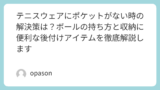 - 忘れちゃいけないアンダーウェア見落としがちなのが、スコートの下に履くアンダースパッツ。ボールを1個〜2個挟み込めるポケット付きは必須です。ボールをスムーズに取り出せるかどうかが、プレーのリズムを左右します。