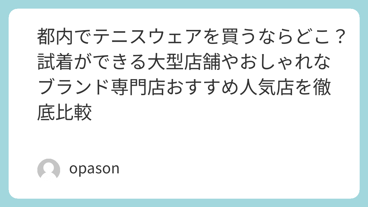 都内には、最新トレンドを追える旗艦店から、玄人も唸る専門店、そして財布に優しいコスパ店まで、テニスウェアを探す環境が完璧に整っています。