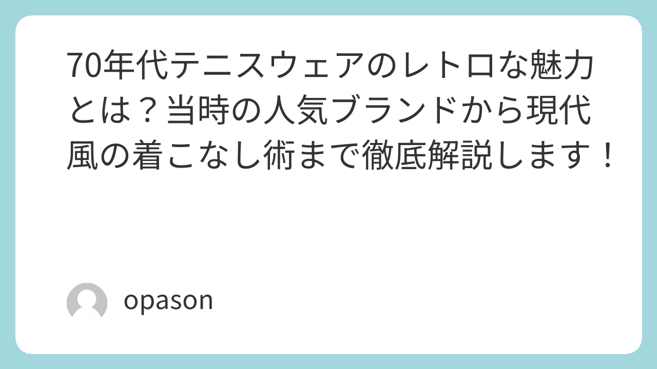70年代のテニスウェアには、今のファストファッションにはない「一着に対する愛着」と「スタイルへのこだわり」が詰まっています。