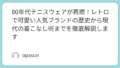 今でも愛され続けるブランドたちの、当時の輝きを振り返ってみましょう。
