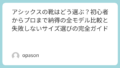 • ワイズ(足囲)をチェックする:アシックスは同じサイズでも「2E(標準)」「3E(広い)」「4E(かなり広い)」と幅が選べるモデルが多いです。自分の足が幅広だと自覚があるなら、迷わず3E以上を選びましょう。