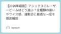 アシックスを選ぶ際、最も重要なのが「ワイズ(足の幅)」です。多くの海外ブランドは幅が狭く設定されていますが、アシックスは「E(標準)」「2E(ワイド)」「4E(スーパーワイド)」といった選択肢が用意されています。
