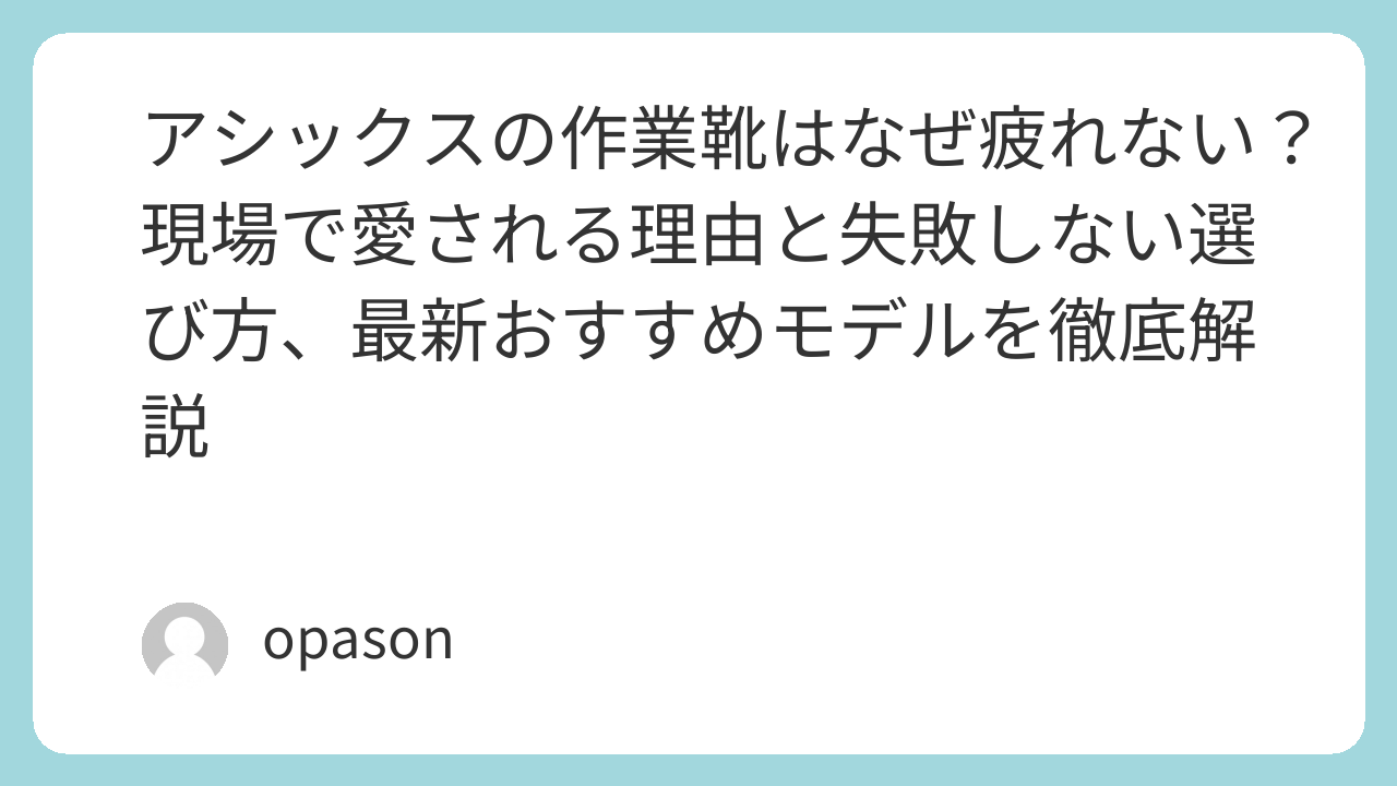 アシックスの作業靴はなぜ疲れない?現場で愛される理由と失敗しない選び方、最新おすすめモデルを徹底解説
