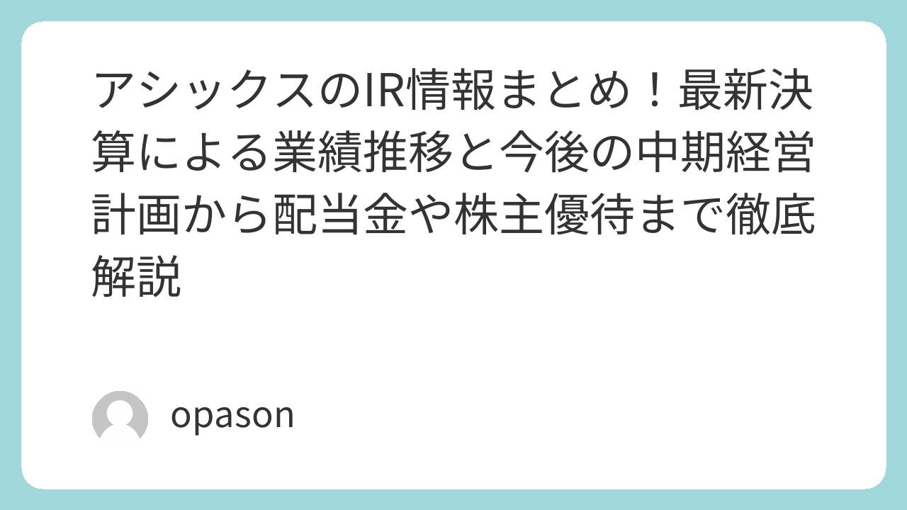 投資は自己責任ですが、私にとってアシックスは、単なる数字の羅列ではなく、スポーツウェアを通じて人々の生活を豊かにするという哲学が、しっかり収益に結びついている稀有な企業に見えます。次回の決算発表では、どの地域がさらに加速するのか、あるいはデジタル戦略がどれほど利益に寄与しているのか。期待を持って、その「走る背中」を追いかけていきたいと思います。
