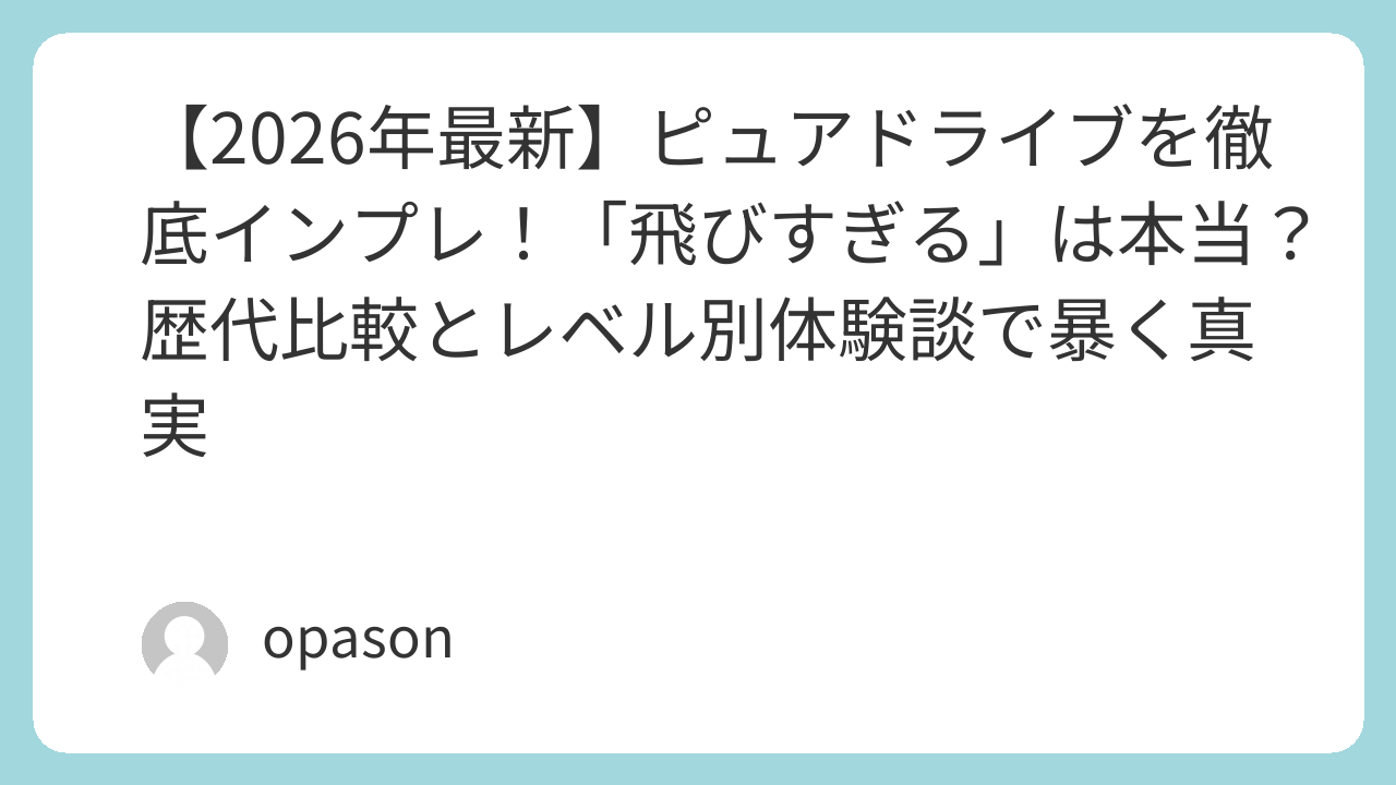 【2026年最新】ピュアドライブを徹底インプレ!「飛びすぎる」は本当?歴代比較とレベル別体験談で暴く真実