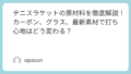 「このしなりはグラスファイバーのせいか!」「この安定感はタングステンのおかげだな」と理解できたとき、あなたのテニスは知識と感覚の両面から、さらに一段上のステージへと進むはずです。