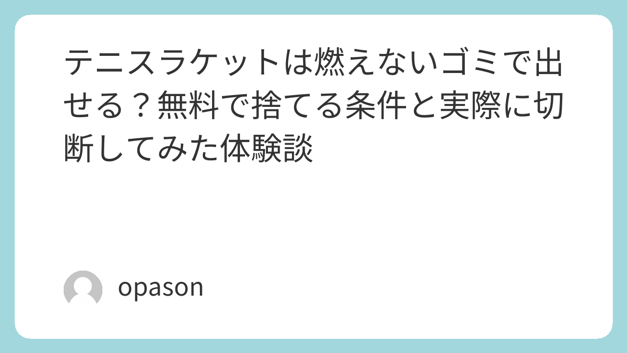 私は一度自分で切断してみて、「次は素直に粗大ゴミに出そうかな……」と少しだけ後悔しました(笑)。あなたのラケットに合った、後悔のないお別れの方法を選んでくださいね。