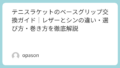 ヨネックス グリップテープを巻く際、あえてホワイトを選べば清潔感あふれる印象に。少し大人っぽく攻めるなら、グレーやライトブラウン系のテープを選ぶと、グラデーションが効いて驚くほどおしゃれに仕上がります。