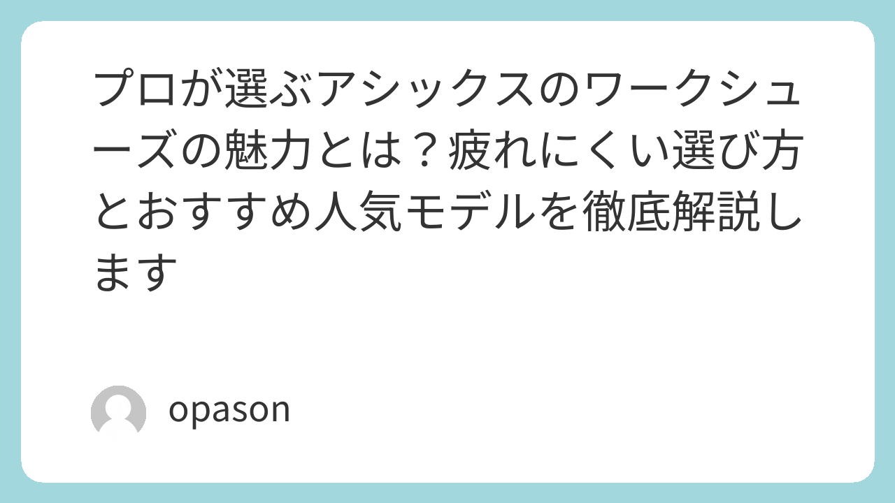 ワークシューズは、単に足を保護するだけの履物ではありません。仕事の効率を高め、あなたの健康を支える「相棒」です。明日からの現場をもっと楽に、もっと安全に。アシックスの一足が、あなたの働き方を足元から変えてくれるはずです。