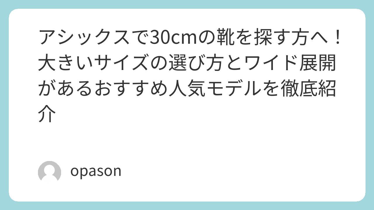 30cmの足は、決して短所ではありません。アシックスのような信頼できるブランドで、自分の足幅(ウィズ)に合った一足を見つけさえすれば、どこへでも自信を持って歩いていけます。