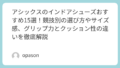 「GEL-YETIのサイズ感はどうなの?」という声をよく耳にします。私の体感では、普段のasicsのスニーカーと同じ、あるいは厚手のソックスを履くことを想定して0.5cmアップするのが正解でした。独特の構造ゆえ、甲高の人でも紐の調整次第でジャストフィットに追い込めるのがこの靴の強みです。