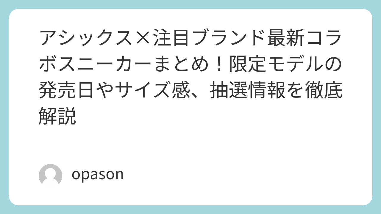 今回は、自他共に認めるスニーカーフリークの私が、実際に履き潰してきた経験をもとに、今絶対にチェックしておくべきアシックスのコラボモデルとその魅力を熱量たっぷりに解説します。