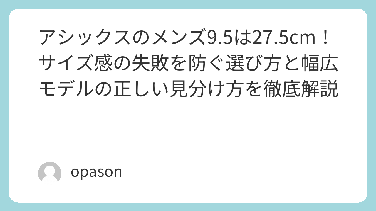 アシックスのメンズ9.5(27.5cm)は、数字以上に奥が深いサイズです。自分の足が幅広なのか、それとも標準的なのかを一度見直し、適切な「ウィズ」と組み合わせることで、asicsの真価を体感できるはずです。