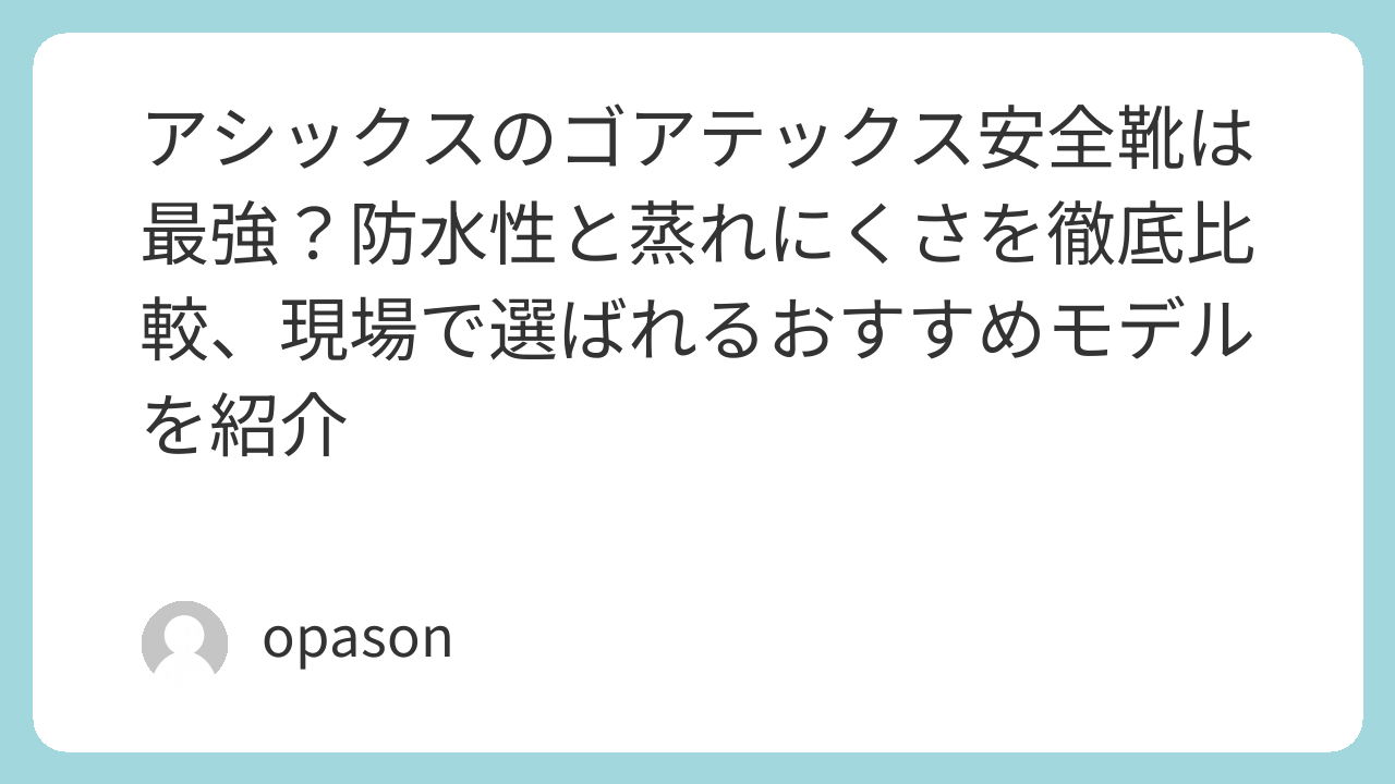もしあなたが今、雨の日の現場で足元にストレスを感じているのなら、アシックス ゴアテックス 安全靴を試してみてください。翌朝の足の軽さと、雨の日が少しだけ楽しみになる感覚に、きっと驚くはずです。