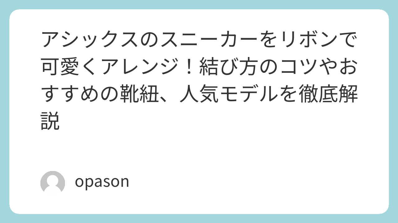 サテンリボンを一巻買うだけで、あなたのasicsは魔法にかかったように表情を変えます。「スニーカーはカジュアルすぎて……」と敬遠していた方にこそ、ぜひこのワクワクするカスタムを体験してみてほしいです。