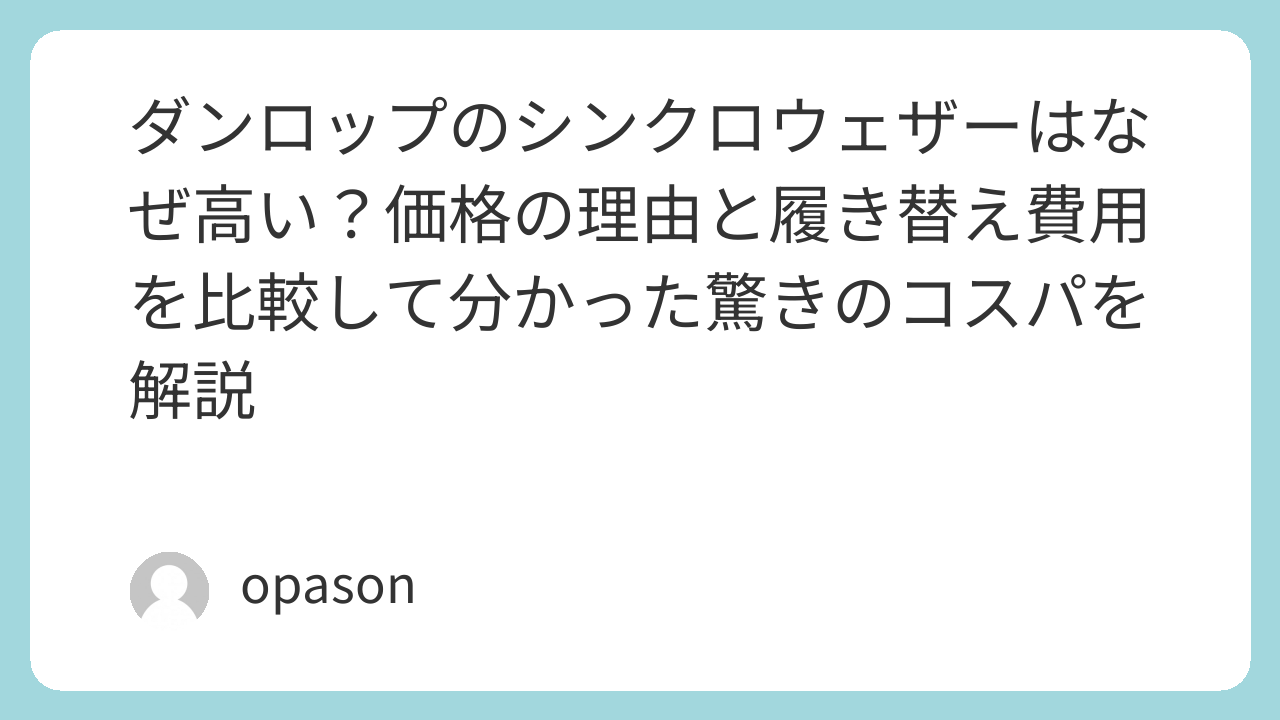 ダンロップのシンクロウェザーはなぜ高い?価格の理由と履き替え費用を比較して分かった驚きのコスパを解説