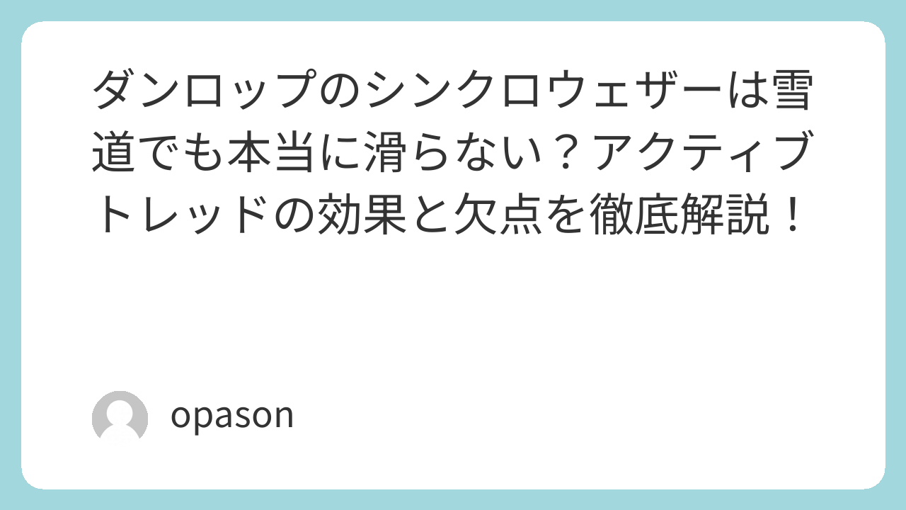 ダンロップのシンクロウェザーは雪道でも本当に滑らない?アクティブトレッドの効果と欠点を徹底解説!