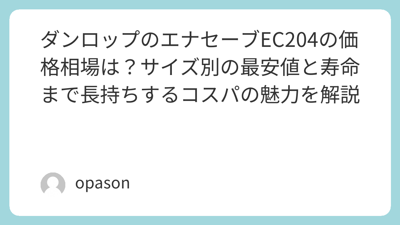 私は以前、価格の安さだけで選んだ格安タイヤで、わずか1年半で溝が偏って減ってしまい、結局買い直すという痛い目を見ました。その時に出会ったのがエナセーブ EC204です。今回は、実際に履き潰して分かった「本当のコスパ」と、気になる最新の価格相場を徹底的に深掘りします。