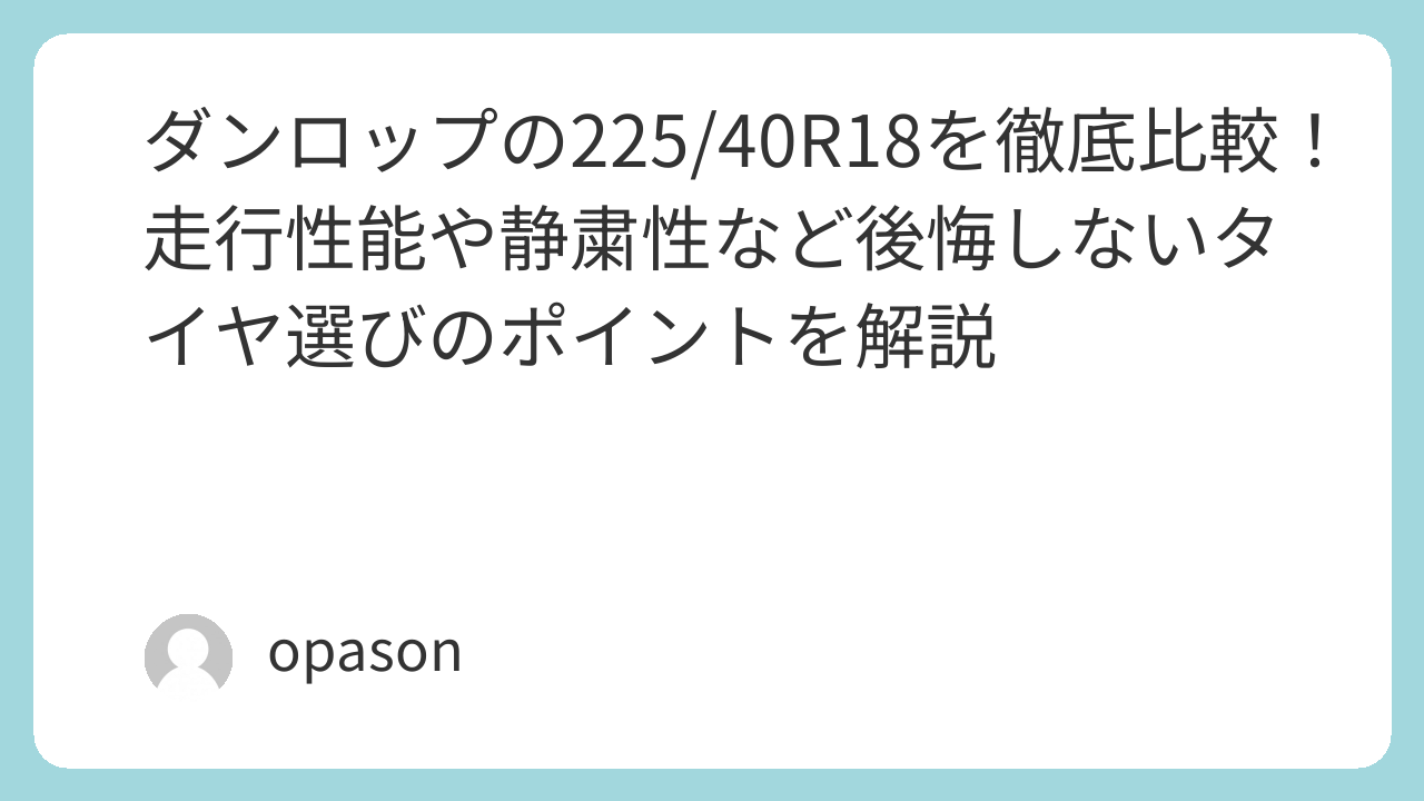 225/40R18というサイズが持つ「魔力」と、私がダンロップに辿り着いた理由