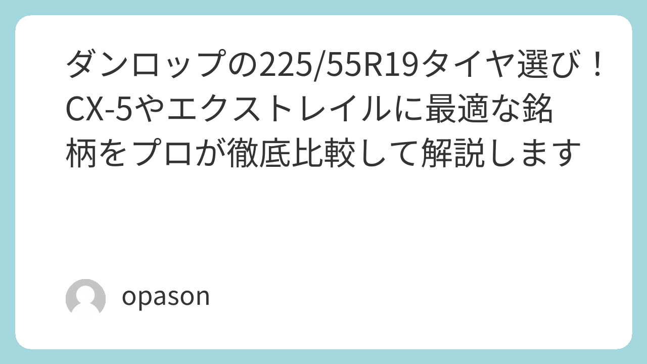 225/55R19という絶妙なサイズだからこそ、ダンロップの技術力を借りて、愛車のポテンシャルを最大限に引き出してみてください。次の週末、ドライブに出るのがきっと楽しみになるはずです。