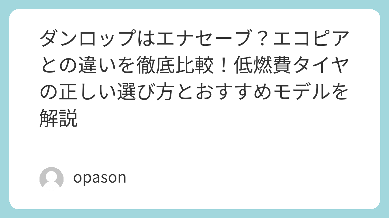 ダンロップはエナセーブ?エコピアとの違いを徹底比較!低燃費タイヤの正しい選び方とおすすめモデルを解説