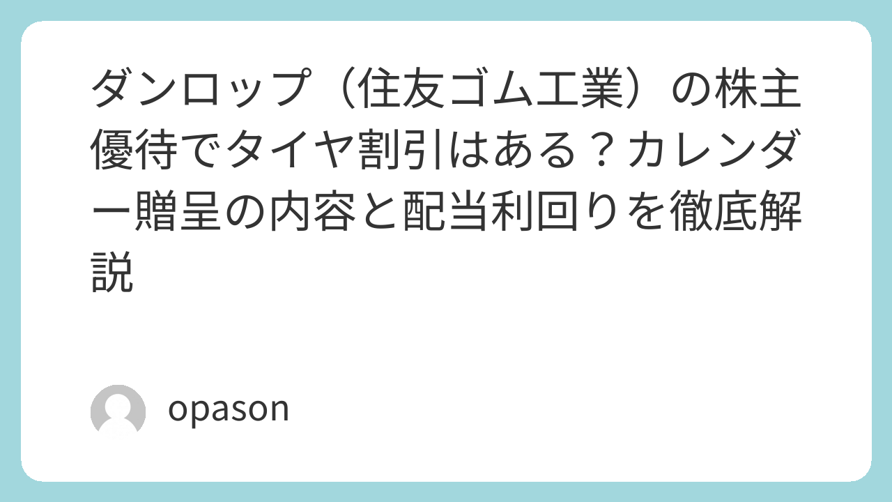 現在のダンロップの株主優待は、ブランドの世界観を楽しむ「カレンダー」という情緒的価値がメインです。一方で、タイヤを安く手に入れるという目的であれば、配当金をコツコツ貯めてタイヤ保管サービスや交換費用に充てるのが最も合理的なルートといえるでしょう。