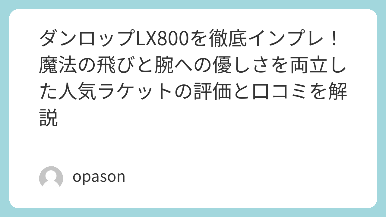 肘に不安を抱えていた時期もありましたが、LX 800に変えてからは長時間の練習でも疲労感が少なくなりました。ボールを掴んでから飛ばすような感覚があり、ただ弾くだけでなく、自分の意思でコースをコントロールしている実感を持てるのが嬉しいポイントです。