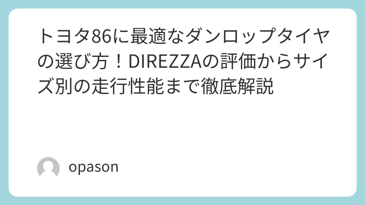 トヨタ86に最適なダンロップタイヤの選び方!DIREZZAの評価からサイズ別の走行性能まで徹底解説