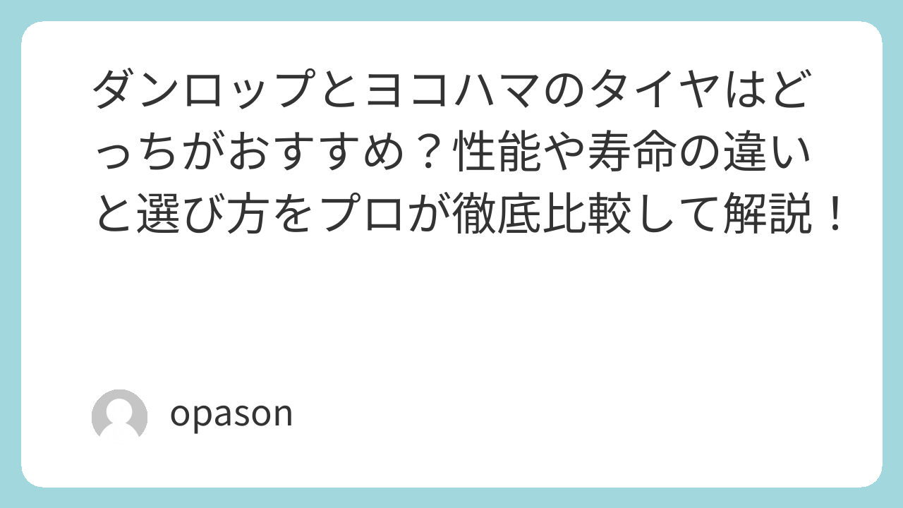 「次のタイヤ、ダンロップかヨコハマかどっちにしよう……」