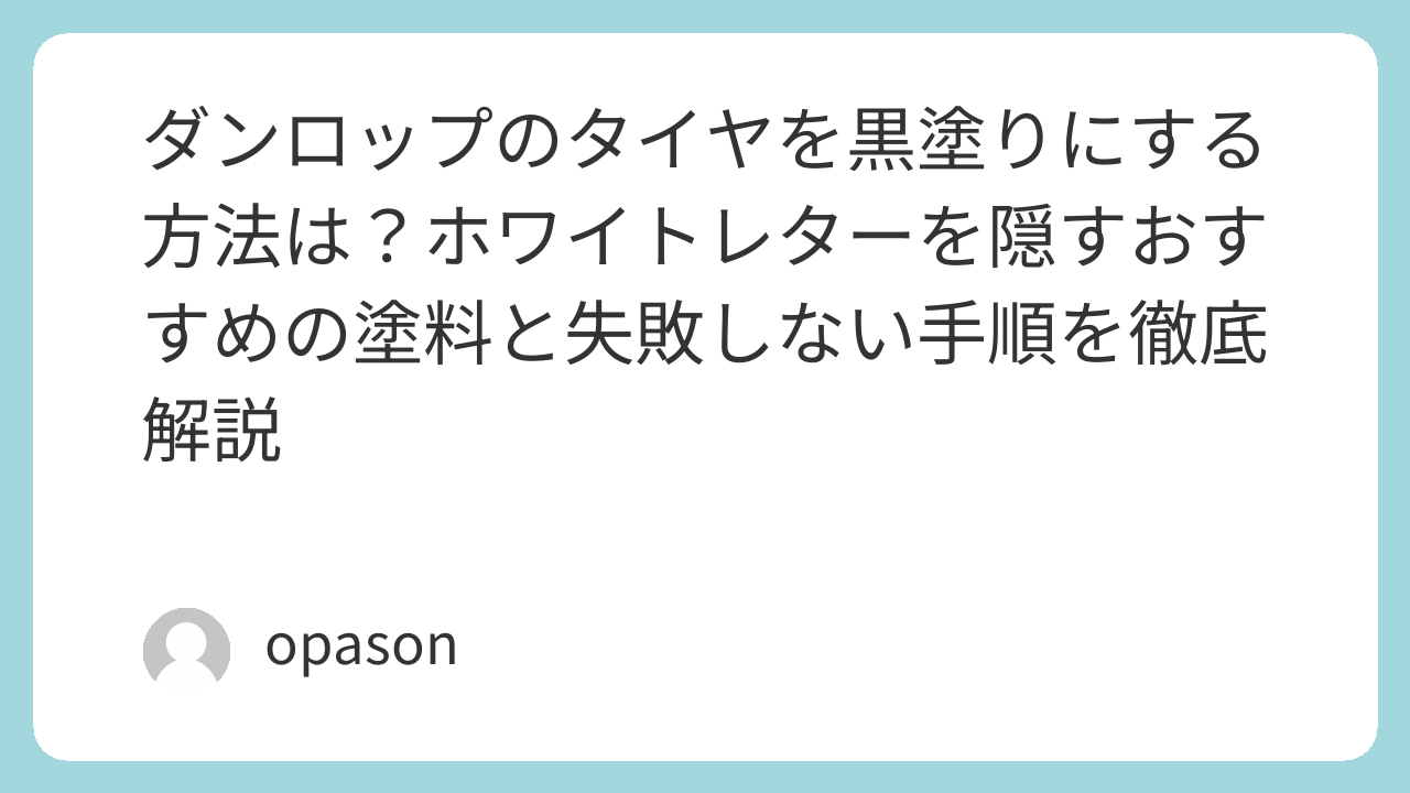 ダンロップのタイヤを黒塗りにする方法は?ホワイトレターを隠すおすすめの塗料と失敗しない手順を徹底解説