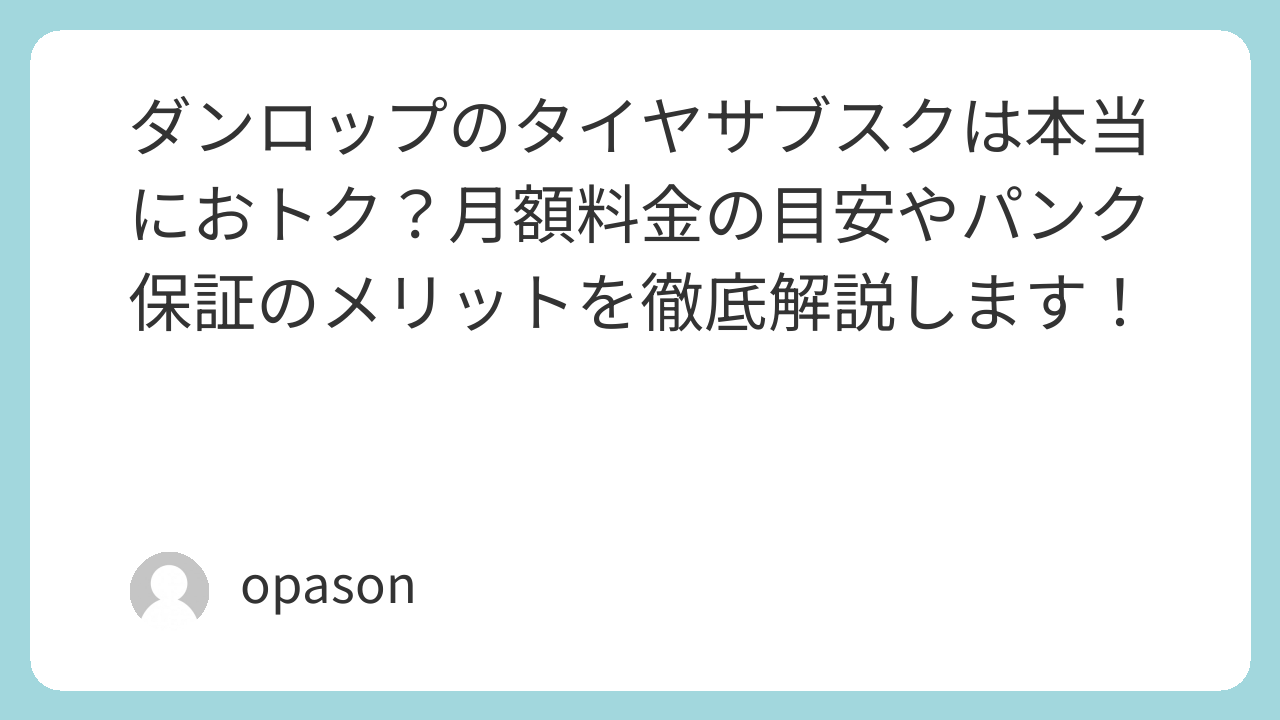 タイヤは命を乗せて走るパーツです。「高いから」と交換を先延ばしにするのが一番のリスク。ダンロップのサブスクは、そのハードルを劇的に下げてくれました。家計を守りながら、家族の安全も守る。そんな賢いカーライフの選択肢として、一度検討してみる価値は十分にあります。