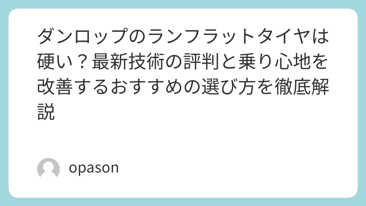 1. ダンロップのランフラットが「痛くない」理由