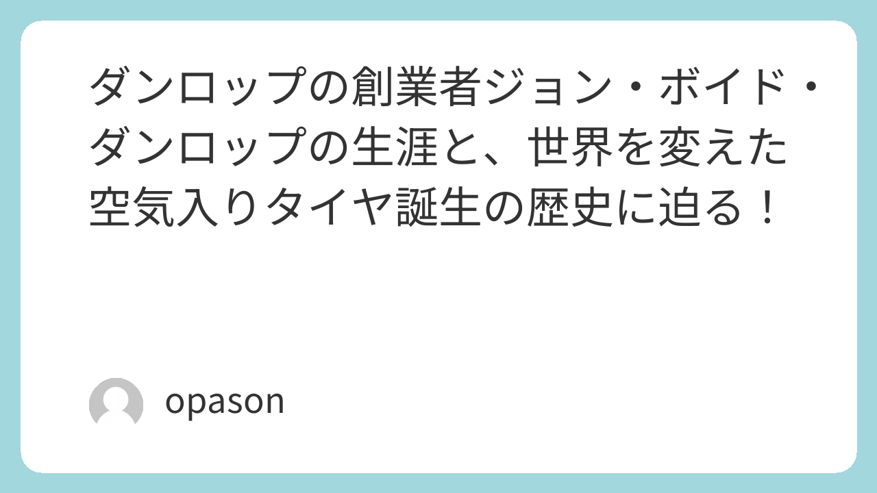 現代の私たちが当たり前のように車や自転車で快適に移動できるのは、130年以上前のある父親の深い愛情があったからこそ、という事実に胸が熱くなります。今回は、世界的なタイヤブランドであるダンロップの創業者、ジョン・ボイド・ダンロップの歩みと、彼が起こした移動の革命について、その情熱を紐解いていきます。