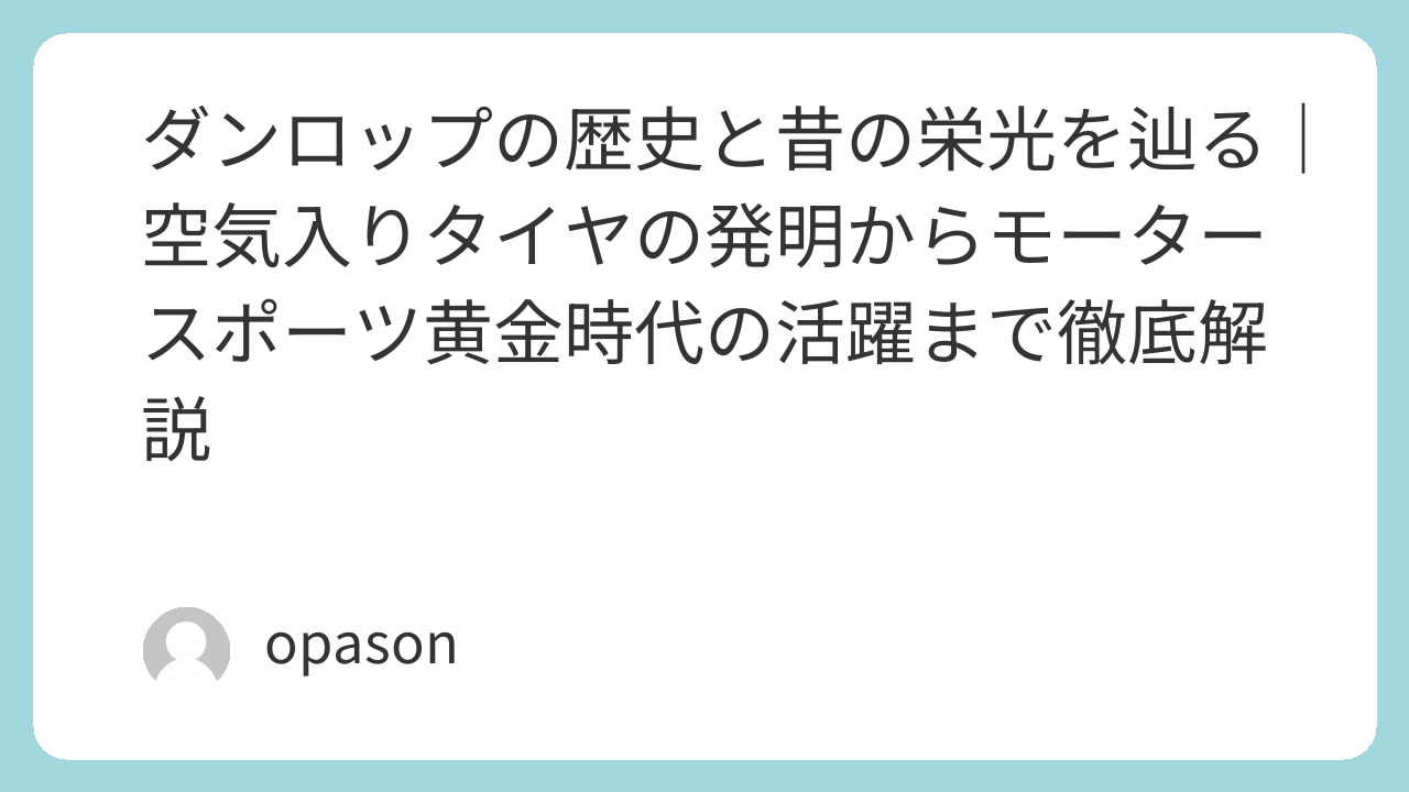 ダンロップのスタッドレスタイヤである「ウインターマックス」を雪道で走らせる時、あるいは雨の高速道路をビューロで静かに流す時。ふと、100年以上前の三輪車や、ル・マンの夜を駆け抜けたマシンのことを思い出してみてください。そのタイヤに込められた情熱を知るだけで、いつものドライブが少しだけ特別なものに変わるはずです。