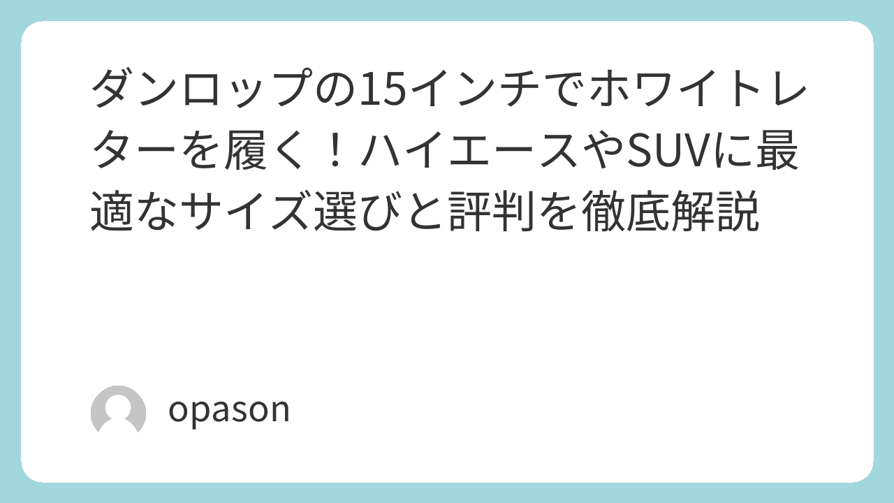 今回は、ダンロップの15インチ・ホワイトレターを検討しているあなたへ、実際に装着して分かった魅力や、絶対に失敗しないサイズ選びのポイントを本音で綴ります。