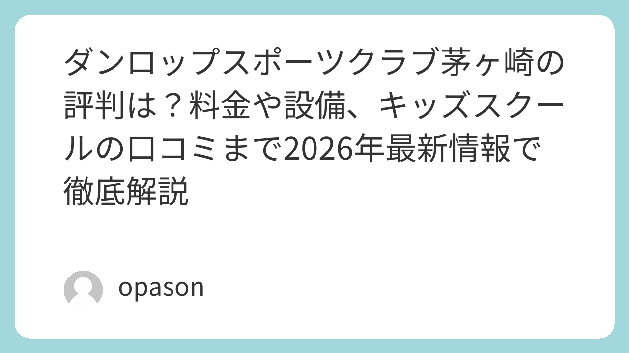 ダンロップスポーツクラブ茅ヶ崎の評判は?料金や設備、キッズスクールの口コミまで2026年最新情報で徹底解説