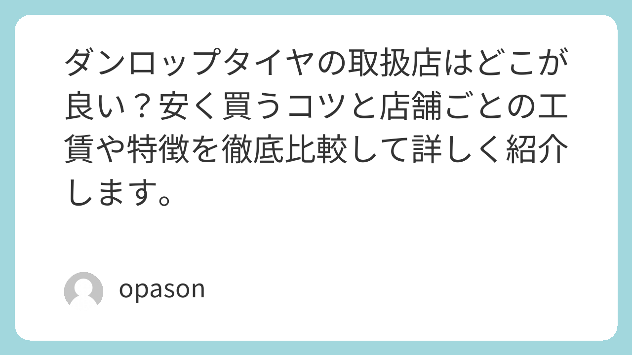 ダンロップのタイヤは、一度履き替えると数年は付き合う大切なパートナーです。安さだけで選ばず、「このお店なら安心して作業を任せられる」と思える場所をぜひ見つけてください。