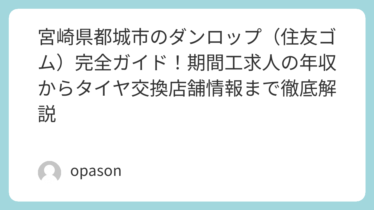 宮崎県都城市のダンロップ(住友ゴム)完全ガイド!期間工求人の年収からタイヤ交換店舗情報まで徹底解説
