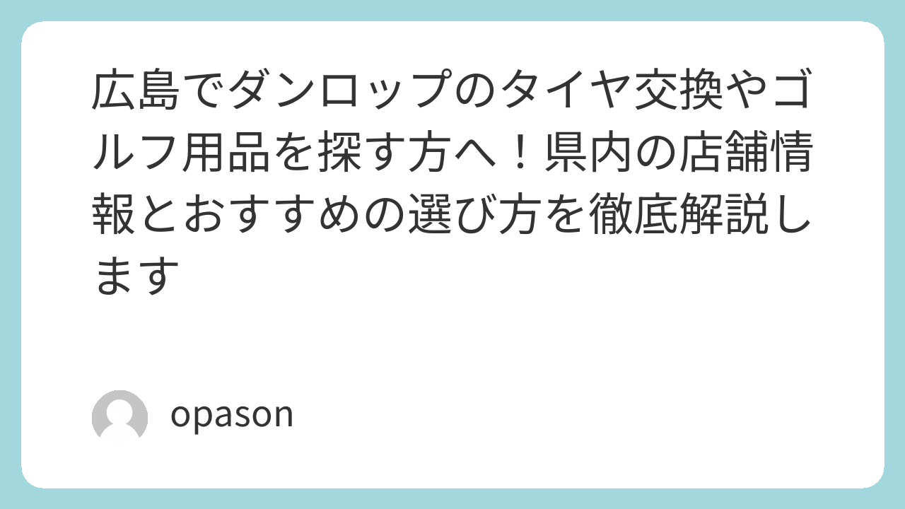 次の方針として、例えば「広島市内でタイヤ持ち込み交換が可能なショップの詳細リスト」や、「県内のゴルフ練習場に併設されたダンロップショップの体験レポート」などを作成することも可能ですが、いかがでしょうか?
