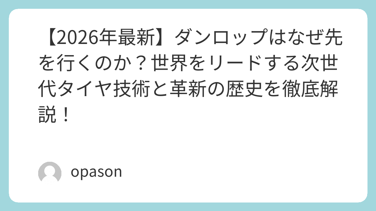 【2026年最新】ダンロップはなぜ先を行くのか?世界をリードする次世代タイヤ技術と革新の歴史を徹底解説!
