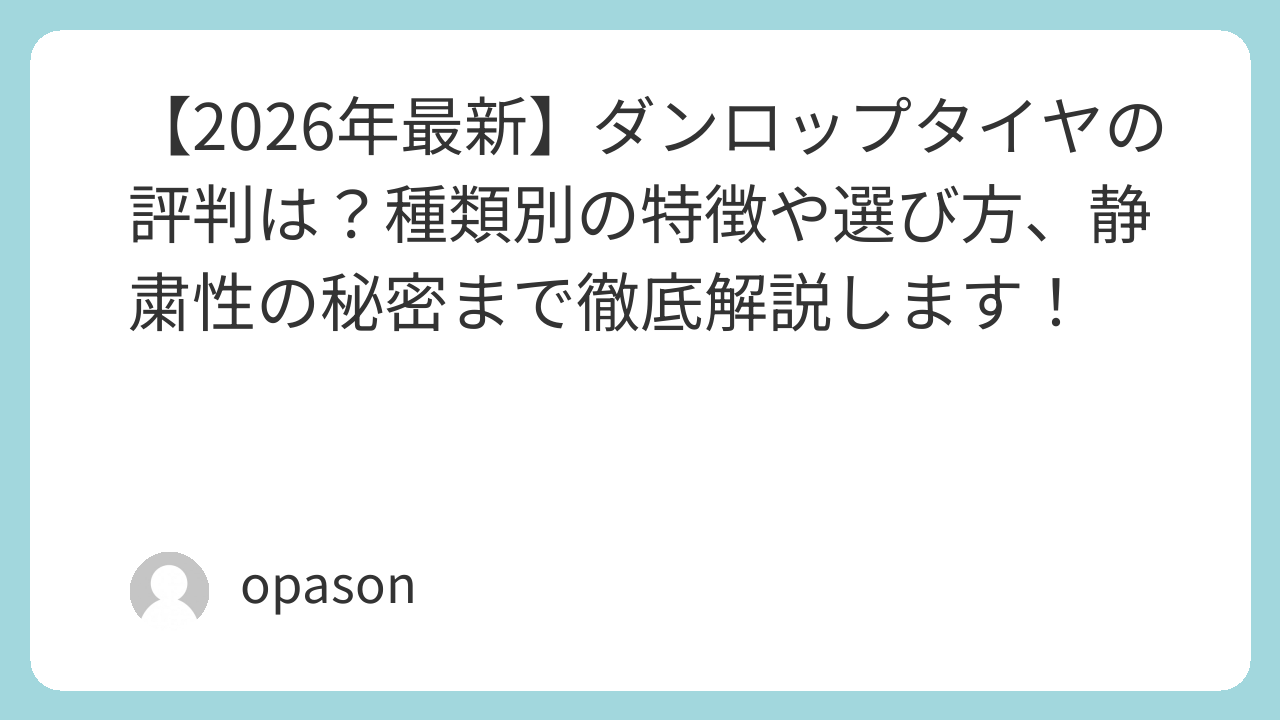 【2026年最新】ダンロップタイヤの評判は?種類別の特徴や選び方、静粛性の秘密まで徹底解説します!