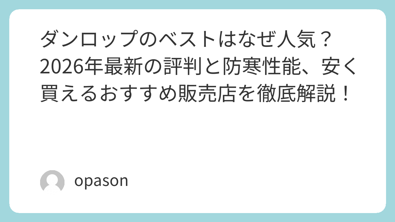 タイヤメーカーとしての印象が強いダンロップですが、実はアパレル、特に「ベスト」の完成度が驚くほど高いことをご存知でしょうか。今回は、実際に冬の屋外作業や早朝のウォーキングでダンロップのベストを愛用している筆者が、その魅力と選び方を徹底的に本音でレビューします。
