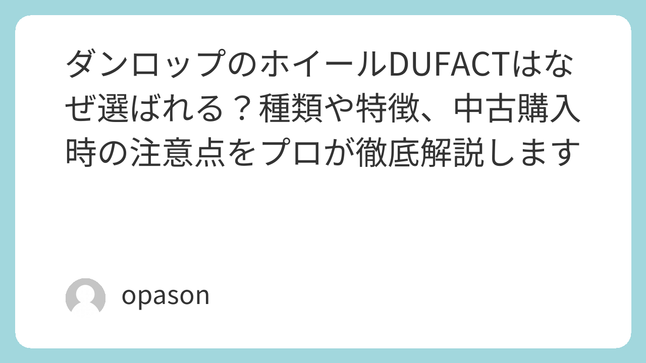 「とりあえず安ければいい」という考えで、出所不明のホイールを選ぶのはおすすめしません。ダンロップのDUFACTなら、手頃な価格で「命を乗せて走る」ための最低限必要な信頼を買い取ることができます。