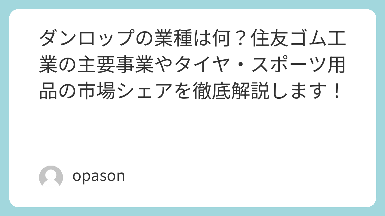 実はこれらすべて「ダンロップ」ブランドですが、その正体は**「住友ゴム工業株式会社」**という東証プライム上場のゴム製品メーカーです。今回は、多角的な顔を持つダンロップの業種と、私たちの生活を支える驚きの事業領域について、実体験を交えながら深掘りします。