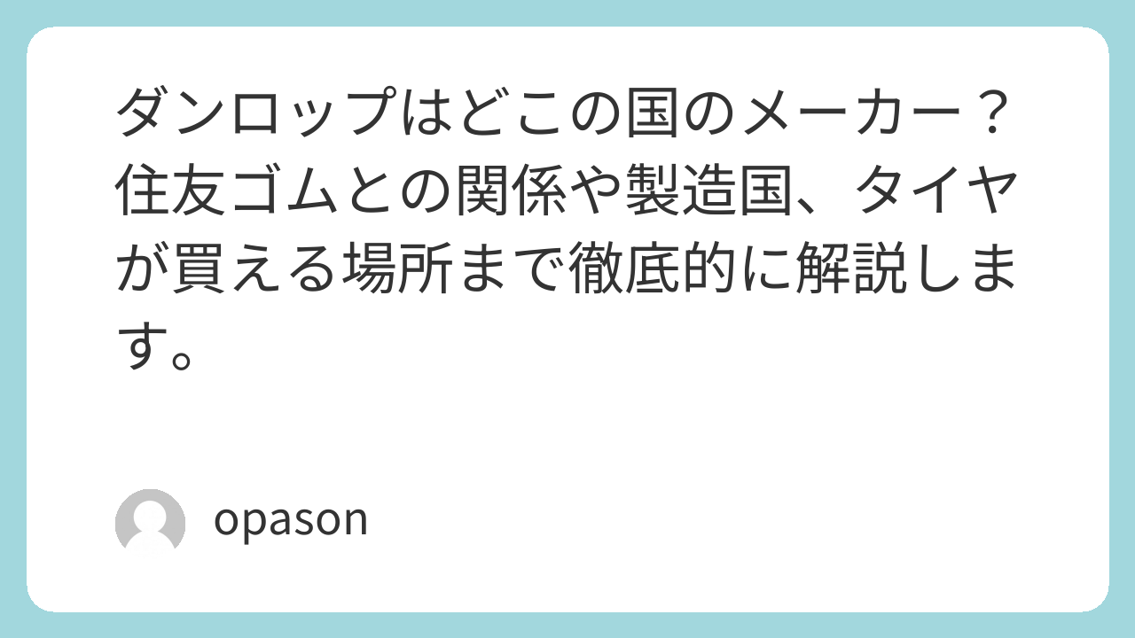ダンロップはどこの国のメーカー?住友ゴムとの関係や製造国、タイヤが買える場所まで徹底的に解説します。