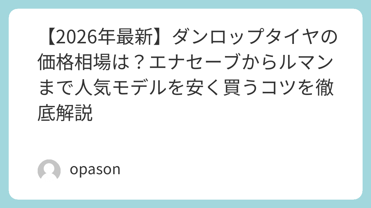 【2026年最新】ダンロップタイヤの価格相場は?エナセーブからルマンまで人気モデルを安く買うコツを徹底解説